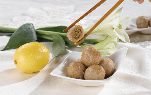 产品特点:外包皮采用新鲜的瘦肉,辅以天然乳化剂及调味料、香料,低温捶打制浆形成稳定乳浊状态;内馅采用瘦肉泥、豆蛋白、葱等天然香料配制而成,形似翡翠;采用专业的食品机械包制而成,皮、馅各味,口感脆嫩,香气四溢,清鲜可口,引人食欲。