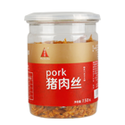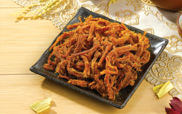 产品特点:呈现黄褐色,油润光泽均匀,呈自然的肌肉纤维条状;香味浓郁鲜美,甜咸适中,嚼而不柴,回味余香悠长。选用腿肉中粗肌肉纤维肉作原料,配以天然香料,低温焖煮后纯手工撕制成型,用天然植物油烹炒后红外线烤制而成,是旅游度假、休闲娱乐、朋友聚餐下酒的理想食品。